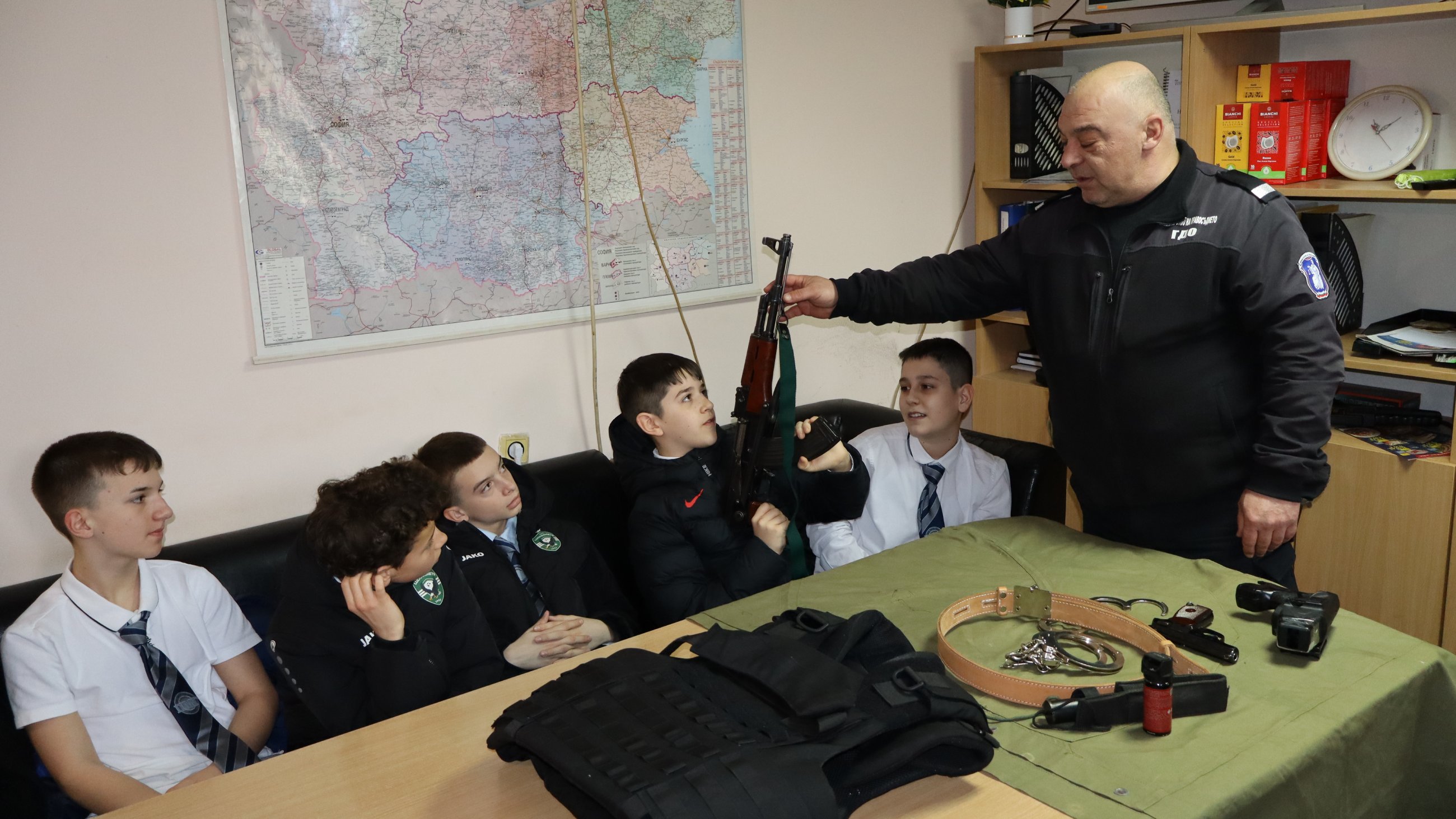 В началото учениците имаха опознавателна обиколка из Съдебната палата и среща със звеното за съдебна охрана, където се запознаха с дейността на служителите, които осигуряват реда в съдебната палата и извършват конвой на задържани лица. Демонстрирани бяха технически средства използвани при транспорт на задържани лица и бе разгледан специализирания автомобил на службата.